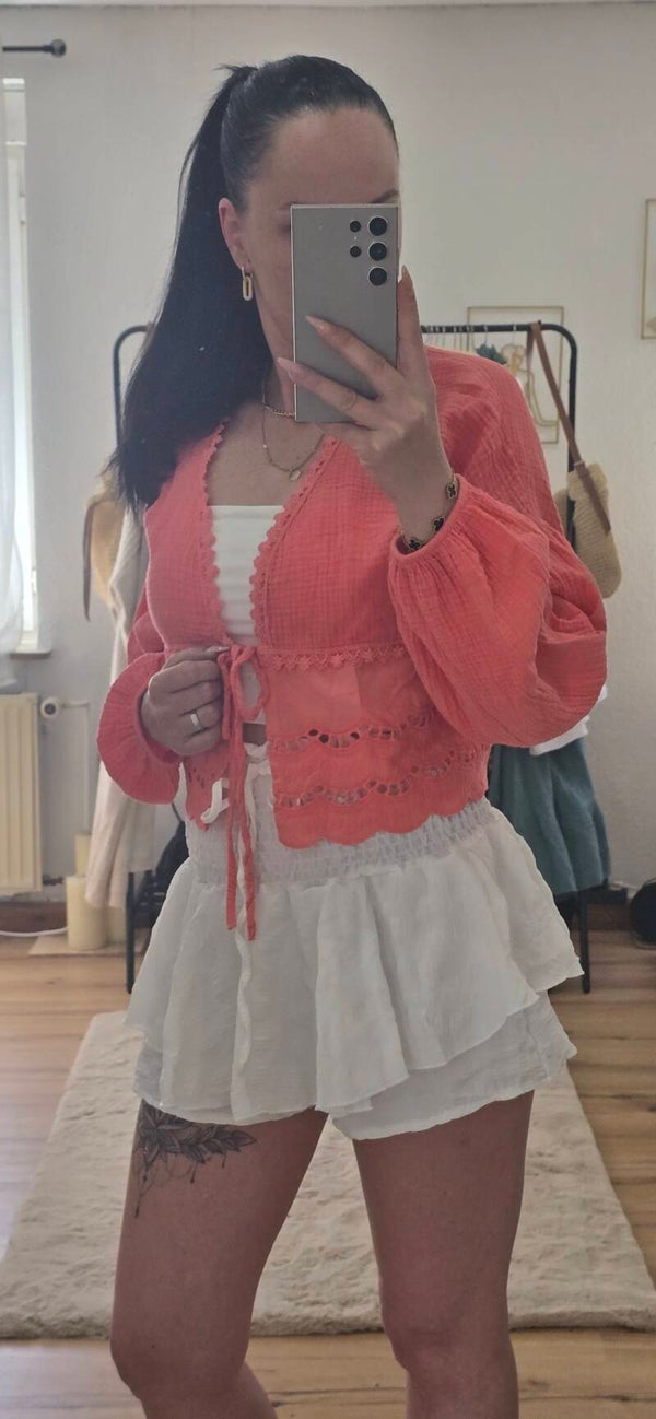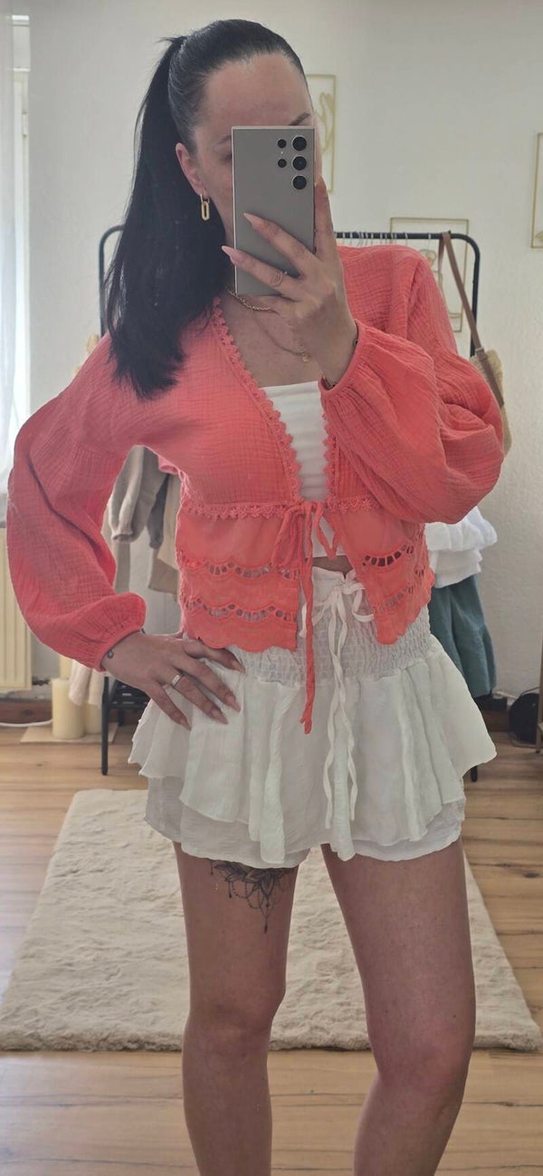 Baumwollgaze Bluse mit Stickdetail -KORALLE-